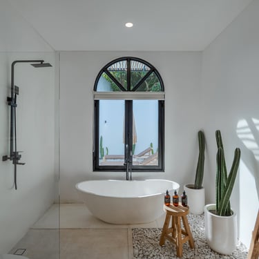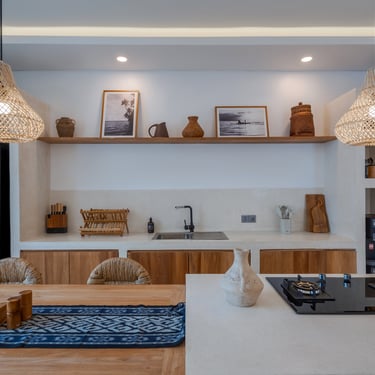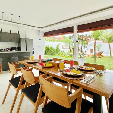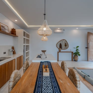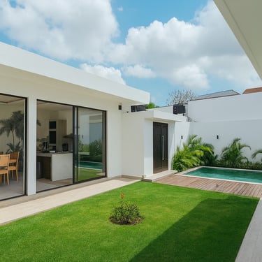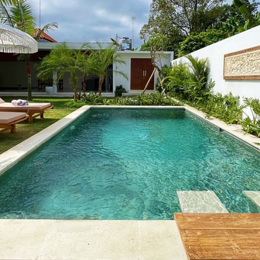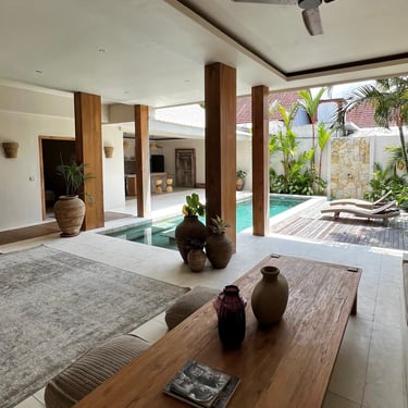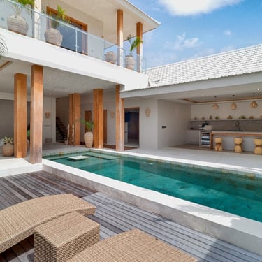 Una villa privada con diseño moderno y mediterráneo, equipada con todas las comodidades para disfrutar de un estilo de vida cómodo y relajado en Bali.